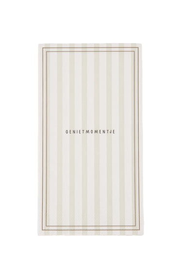 The Zusss napkins complete your moment of enjoyment with their stylish striped design and soft colors of white, sand, and brown. These napkins are made of high-quality paper and have a rectangular shape measuring 25 x 13 centimeters, perfect for giving your table a warm and cozy touch. The Zusss napkins are ideal for any occasion and go beautifully with our cooking and dining items. Make every moment of enjoyment extra special with these durable and charming accessories that ensure a stylish presentation.
