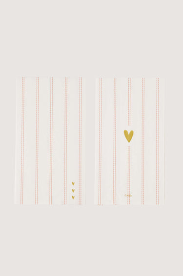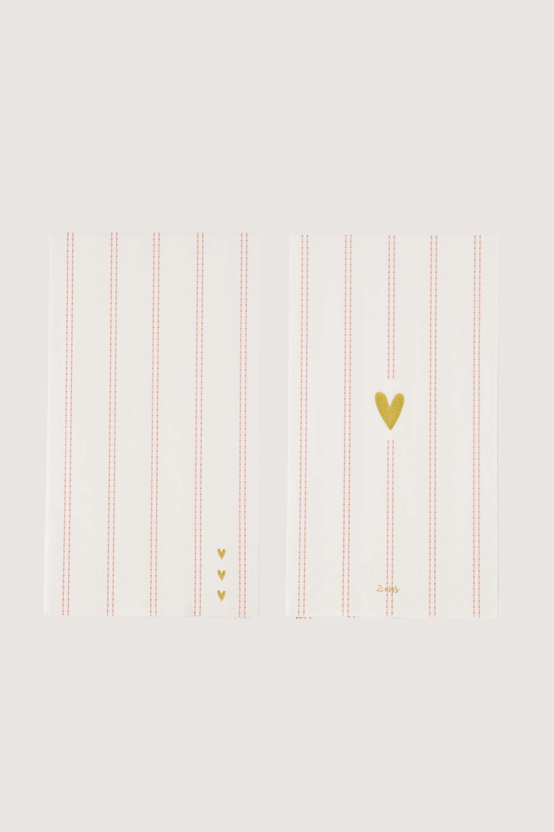 The Zusss rectangular striped heart napkins are perfect for setting a festive table. These napkins feature a white and pink color scheme and combine subtle stripes with charming hearts. Made from a soft, durable fabric that has a pleasant texture and is suitable for festive occasions. Their rectangular shape makes them a perfect match for various tableware styles. Combine them with cute candlesfrom our collection for a complete Table Moment. The napkins enhance any table decor with their charming design and practical size.