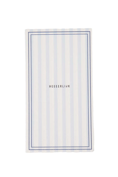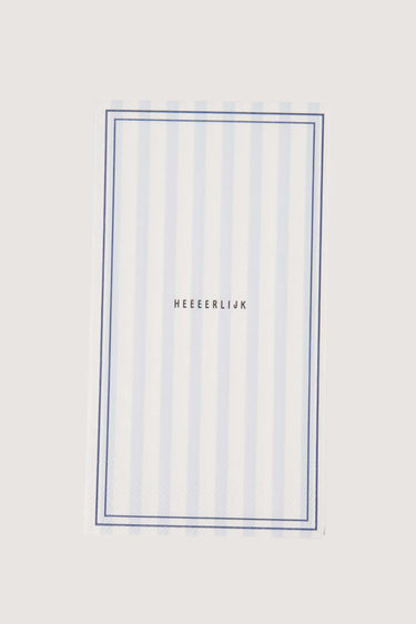 The Zusss striped napkins add atmosphere and functionality to any table. These striped napkins are made from high-quality paper in a fresh white and blue design. Measuring 20 x 33 cm, they are perfect for any occasion. With their subtle stripes and cheerful 'heeeerlijk' text, these striped napkins are ideal for festive or everyday table settings. Combine the napkins with our tableware setsfor a complete look. The striped napkins combine style and convenience for every occasion.