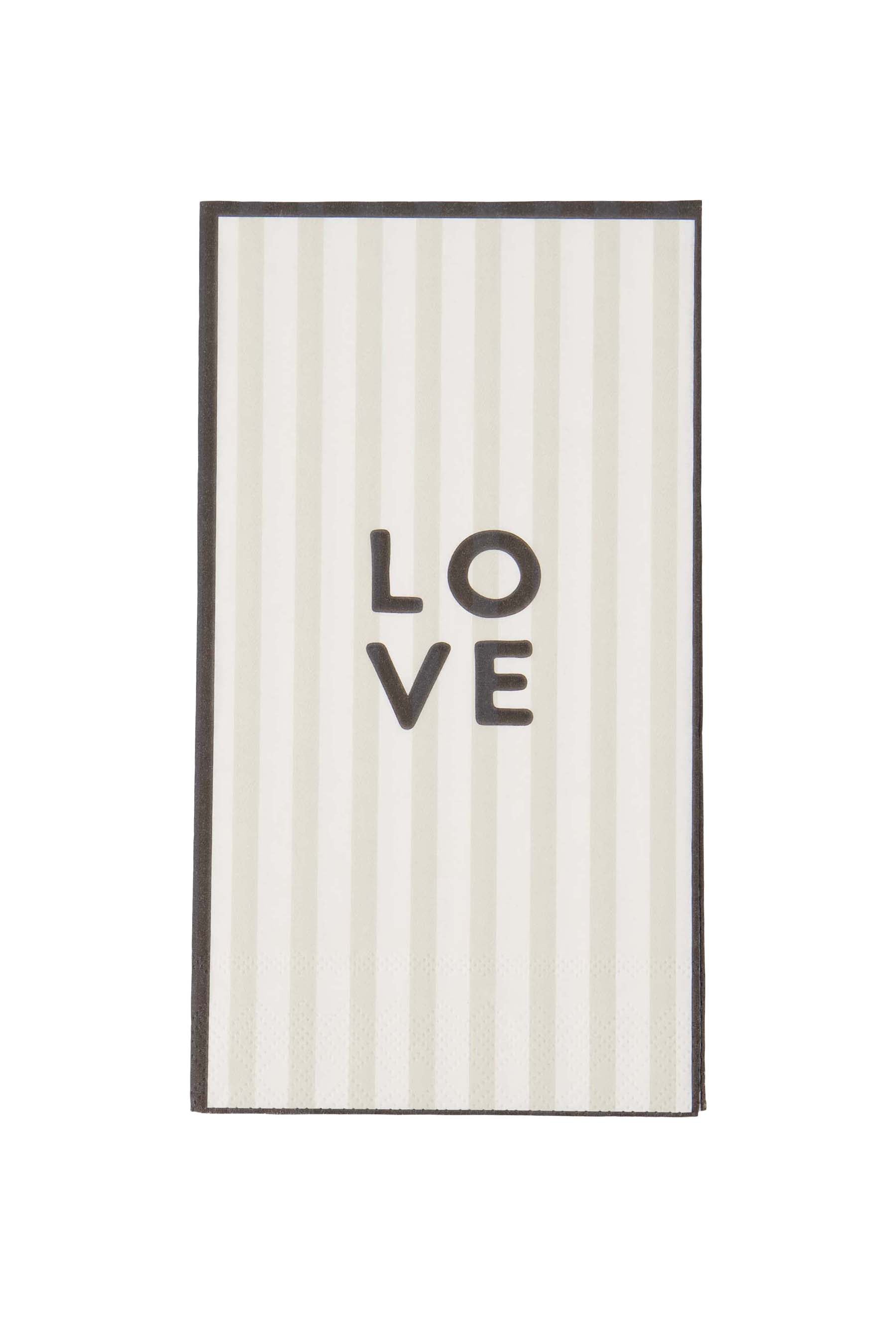 Deze Zusss servetten rechthoek streep zijn perfect voor je tafelsetting. De servetten hebben een fijne zandkleurige en witte streep met de tekst "LOVE" erop, wat... Lees meer
