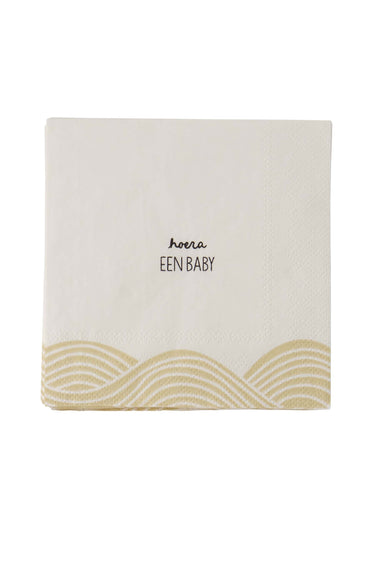Set van 12x 20 servetten hoera baby 12,5x12,5cm wit/goud
