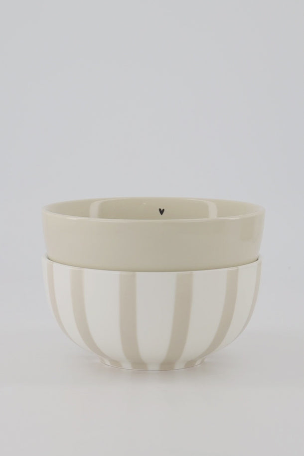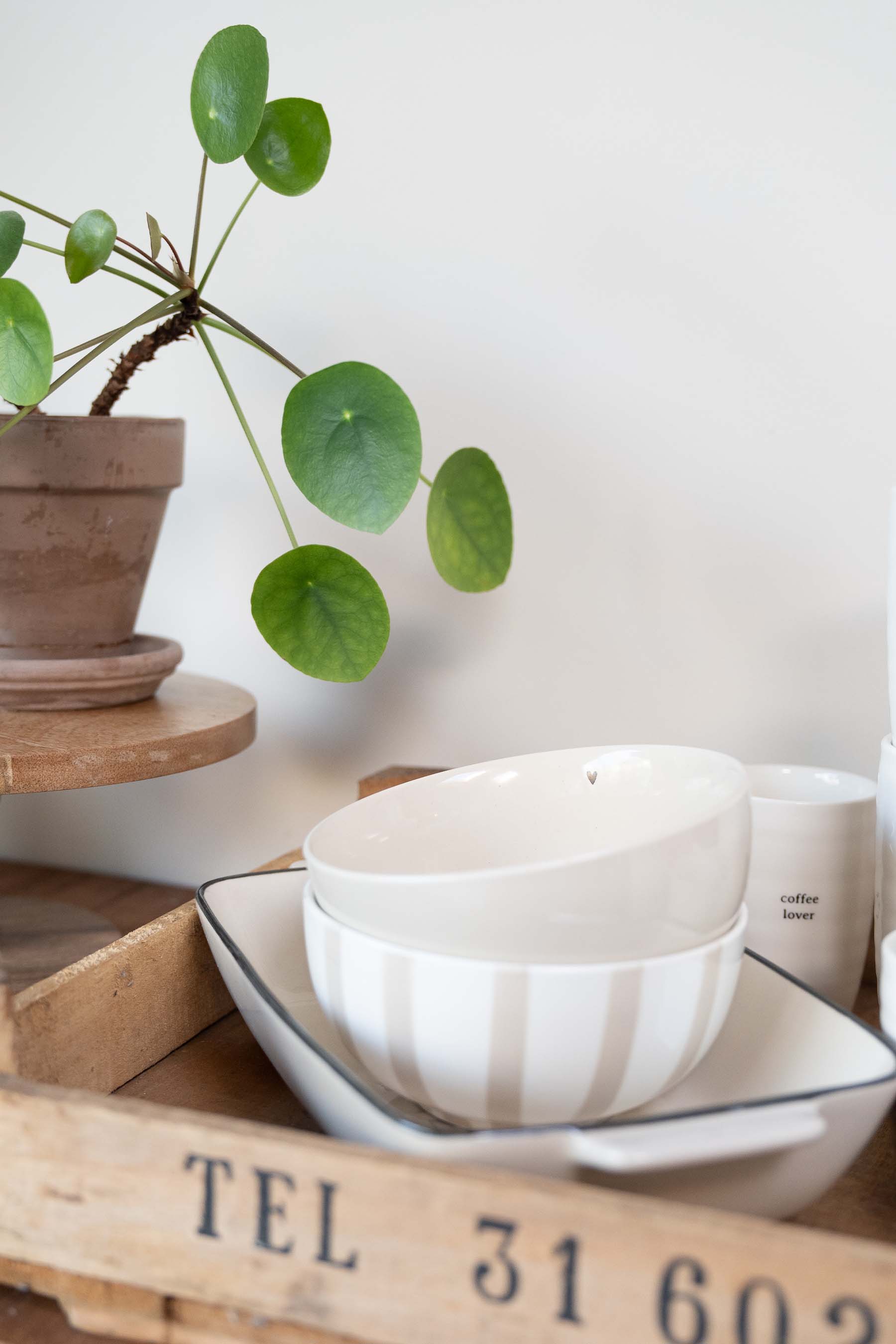 Deze Zusss kommen set in wit en zand is perfect voor jouw ontbijt of salade. Het set van 2 kommen in keramiek toont een stijlvolle witte kom met zandkleurige strepen en een effen zandkleurige kom. Met een diameter van 15 cm en een hoogte van 6,5 cm zijn ze lekker groot. Dit kommen set is gemaakt van hoogwaardig keramiek en past mooi bij onze andere servies artikelen. Voeg deze Zusss kommen set toe voor een basic en stoer servies op tafel.