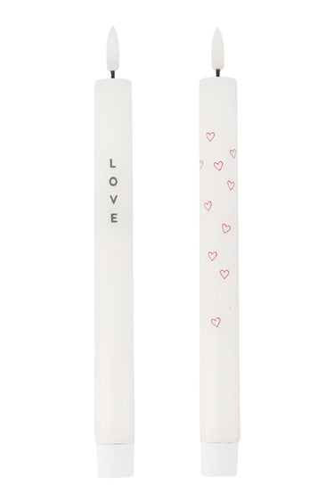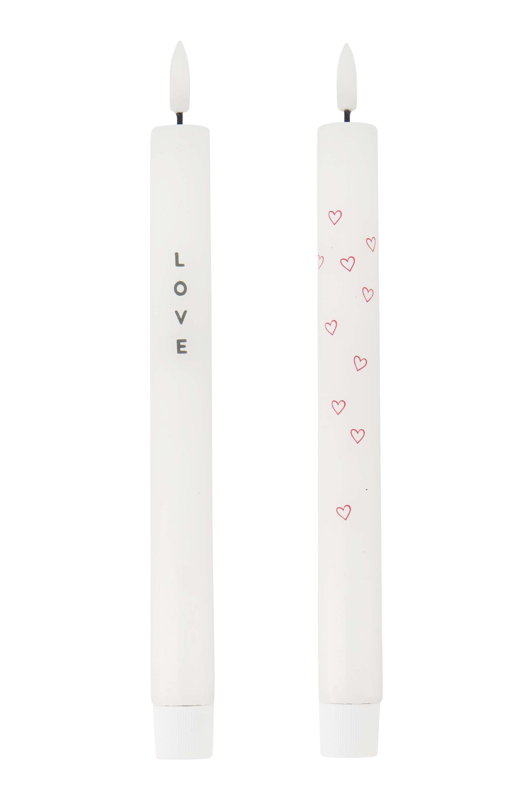 This Zusss led candle set brings warmth and charm to your living room. The led candles are white with subtle red and green colored hearts, perfect for a cozy touch without fuss. The set of 2 led candles 'love' is ideal for those who want to create atmosphere without flame and smoke. With these Zusss led candles you get a basic, cool and unique accent in your home that always burns without worry.