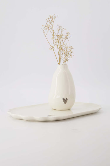 Vase Ceramic Heart White/Silver - Size: Ø7,5x13cm