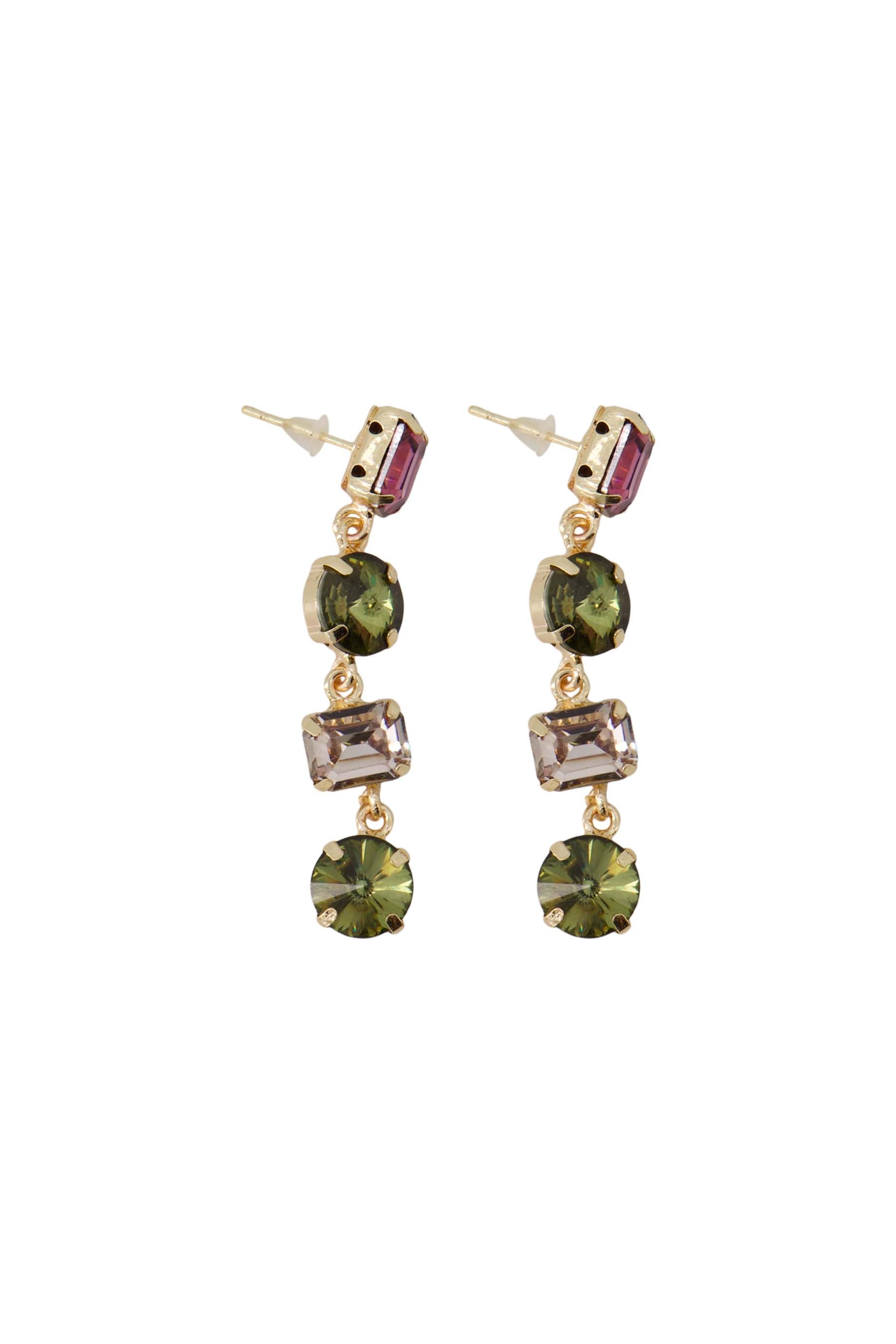The Zusss earrings with colored stones are a subtle eye-catcher. These veil earrings have a gold-colored base with different colored stones that glisten softly. Because of their fine length and playful appearance, they fit various looks. The combination of the gold and multicolor stones makes them perfect for both casual and somewhat festive occasions. Easily add some color and elegance to your outfit with these charming earrings.