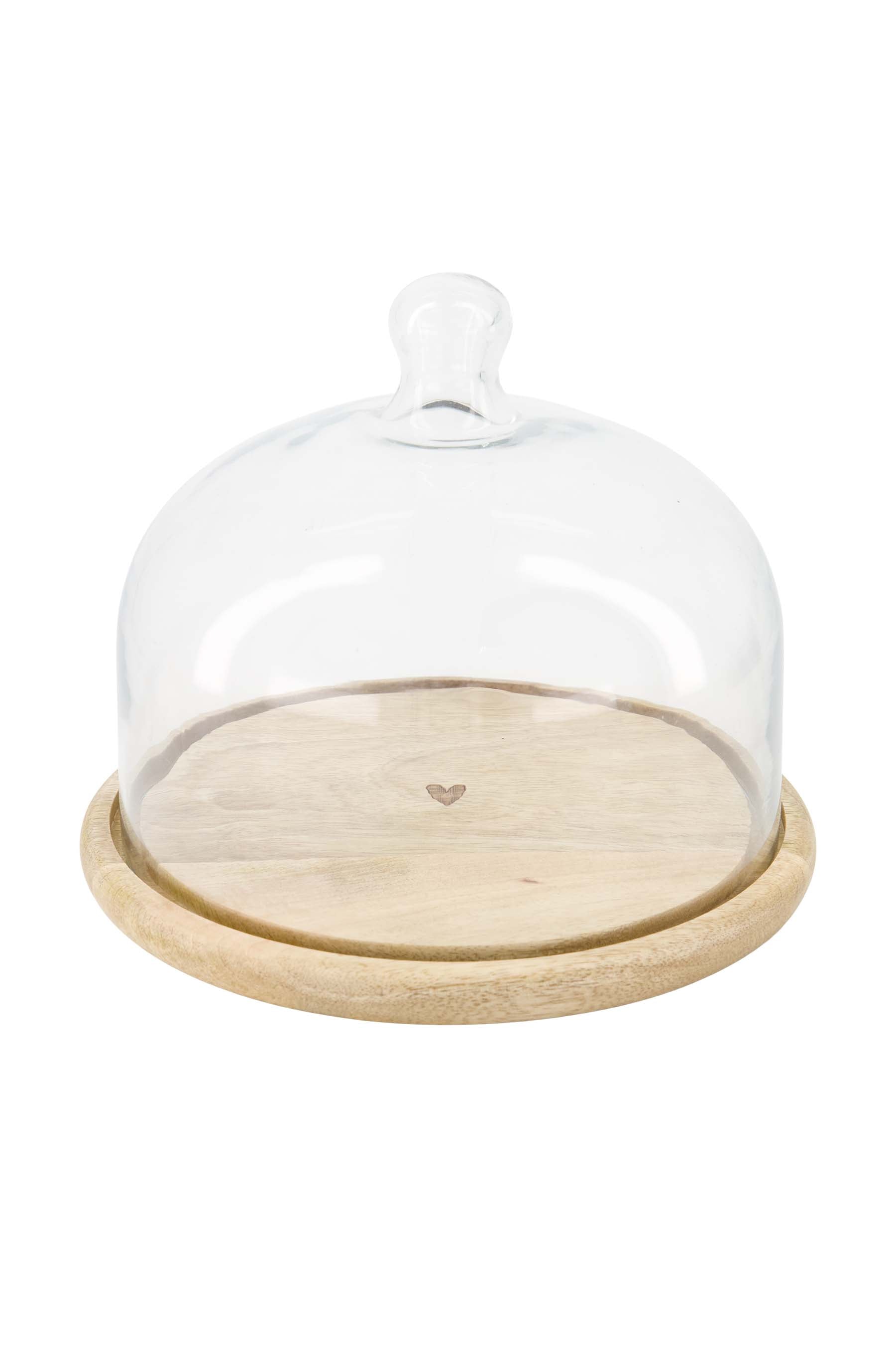 glass dome on wooden heart-shaped base