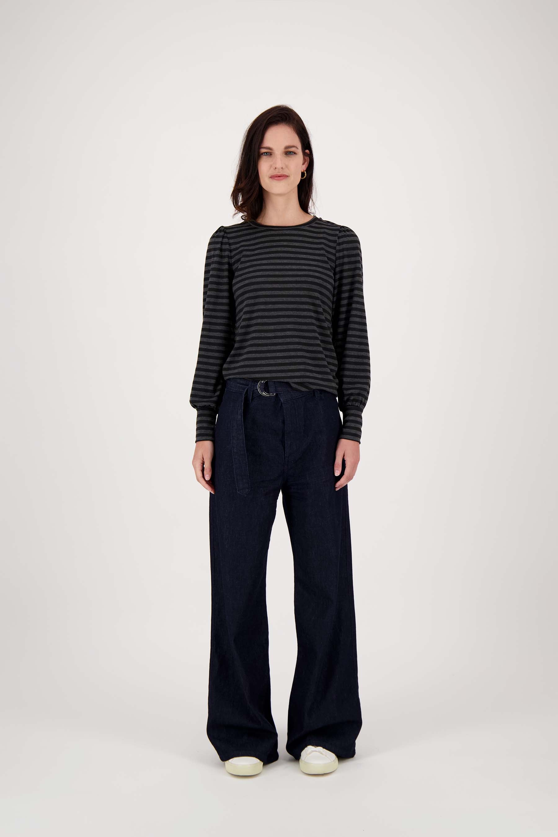striped top with puff sleeves