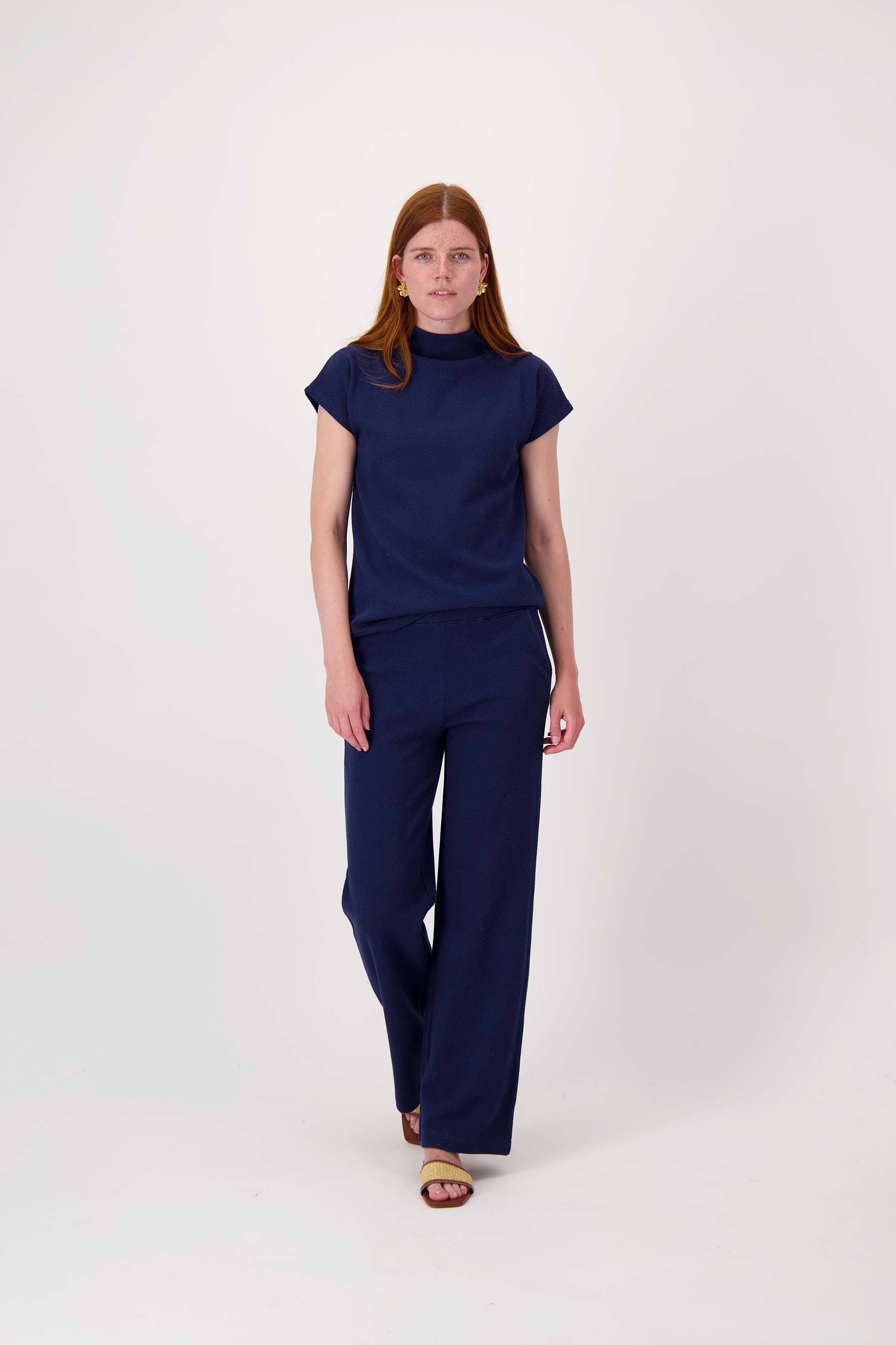 The Zusss stretch pants are the perfect choice if you are looking for comfortable and stylish pants with texture. These stretch pants from Zusss feel wonderfully soft and have a subtle texture, ideal for combining casual and chic looks. The pants come in a beautiful summer navy color, which is a timeless and versatile addition to your wardrobe. Thanks to the stretch, these Zusss pants offer plenty of freedom of movement and comfort. Pair them with a matching top from our collection to create an effortless, elegant look.