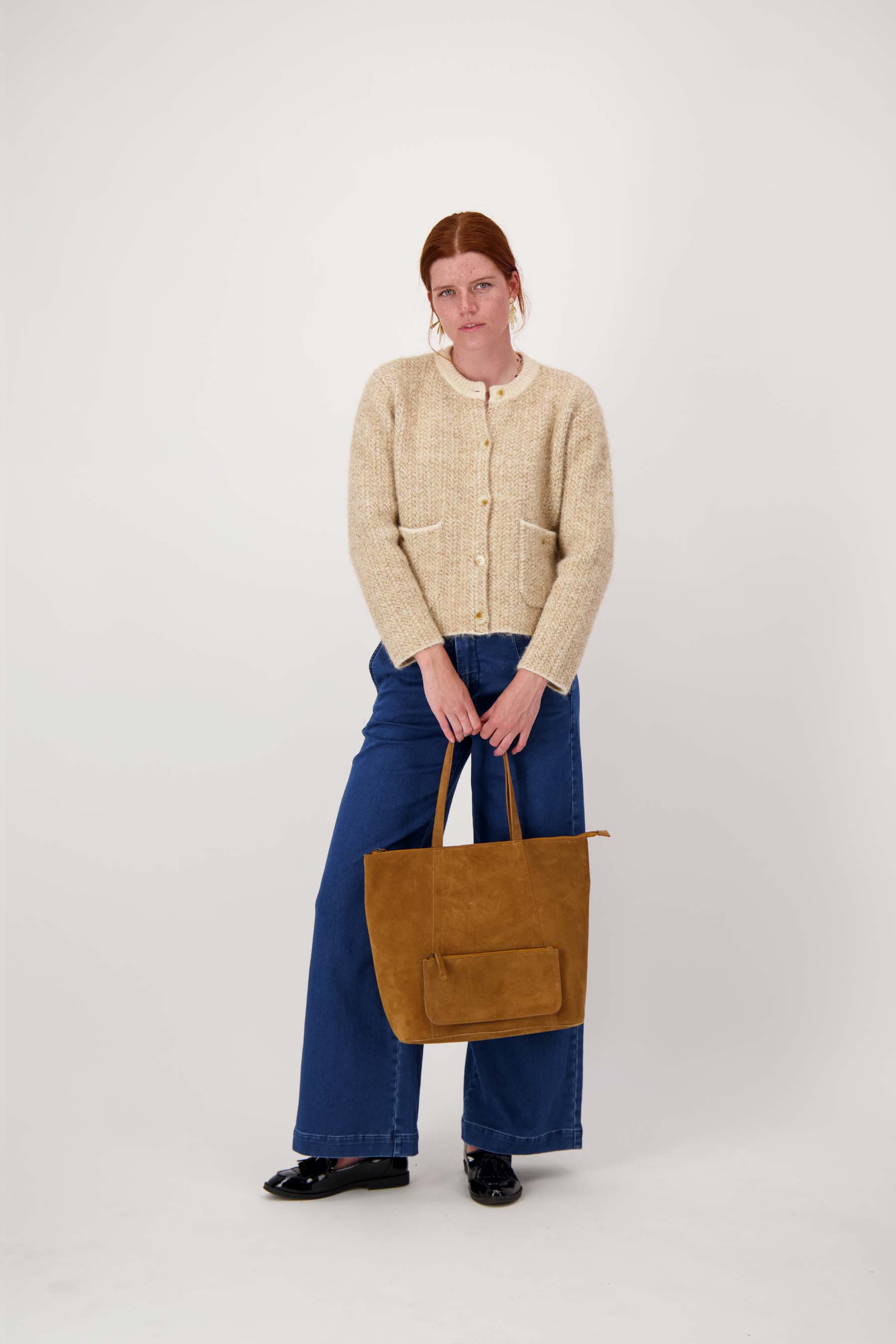 De Zusss suede shopper is de perfecte tas voor wie houdt van een basic, stoere look. Deze shopper combineert functionaliteit met een warme caramel kleur die moeiteloos bij elke outfit past. De suede shopper biedt voldoende ruimte voor al je essentials en is gemaakt van zacht suède met een fijne structuur. Dankzij het ruime formaat en stevige hengsels is deze tas ideaal voor dagelijks gebruik. Aan de voorkant is de tas voorzien van een voorvak met rits, en binnenin vind je een binnenvakje met ritssluiting, zodat je belangrijke items veilig en overzichtelijk kunt opbergen. Ontdek de charme van deze tas in de categorie tassen en geniet van het gemak en de stijlvolle uitstraling die de Zusss suede shopper je geeft.