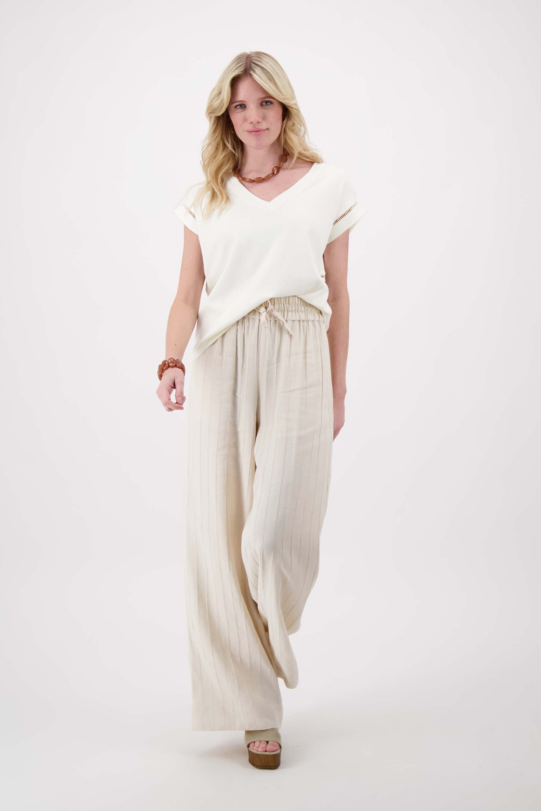 Dit Zusss t-shirt met opengewerkte details geeft je outfit net dat beetje extra. Het off white shirt valt op door het subtiele ajourwerk, wat zorgt voor een frisse, luchtige uitstraling. Het t-shirt is ideaal voor warme dagen én makkelijk te combineren met jeans of een rok. De opengewerkte details maken dit shirt perfect voor wie houdt van fijne, vrouwelijke accenten zonder gedoe. Combineer het met jouw favoriete casual kleding uit de t-shirts & sweaters collectie voor een natuurlijke, ontspannen stijl.