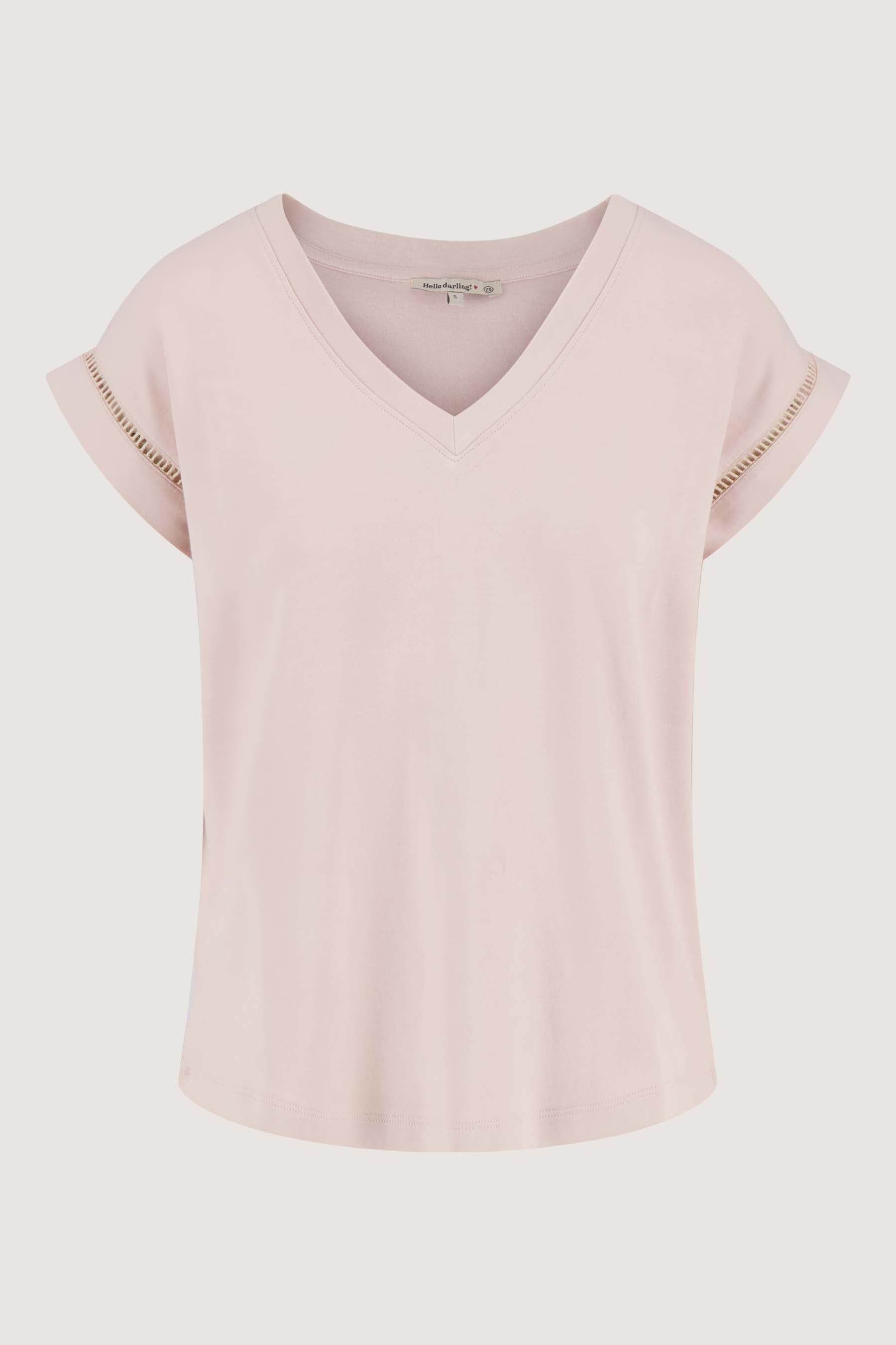 Zusss t-shirt met opengewerkte details in zachtroze