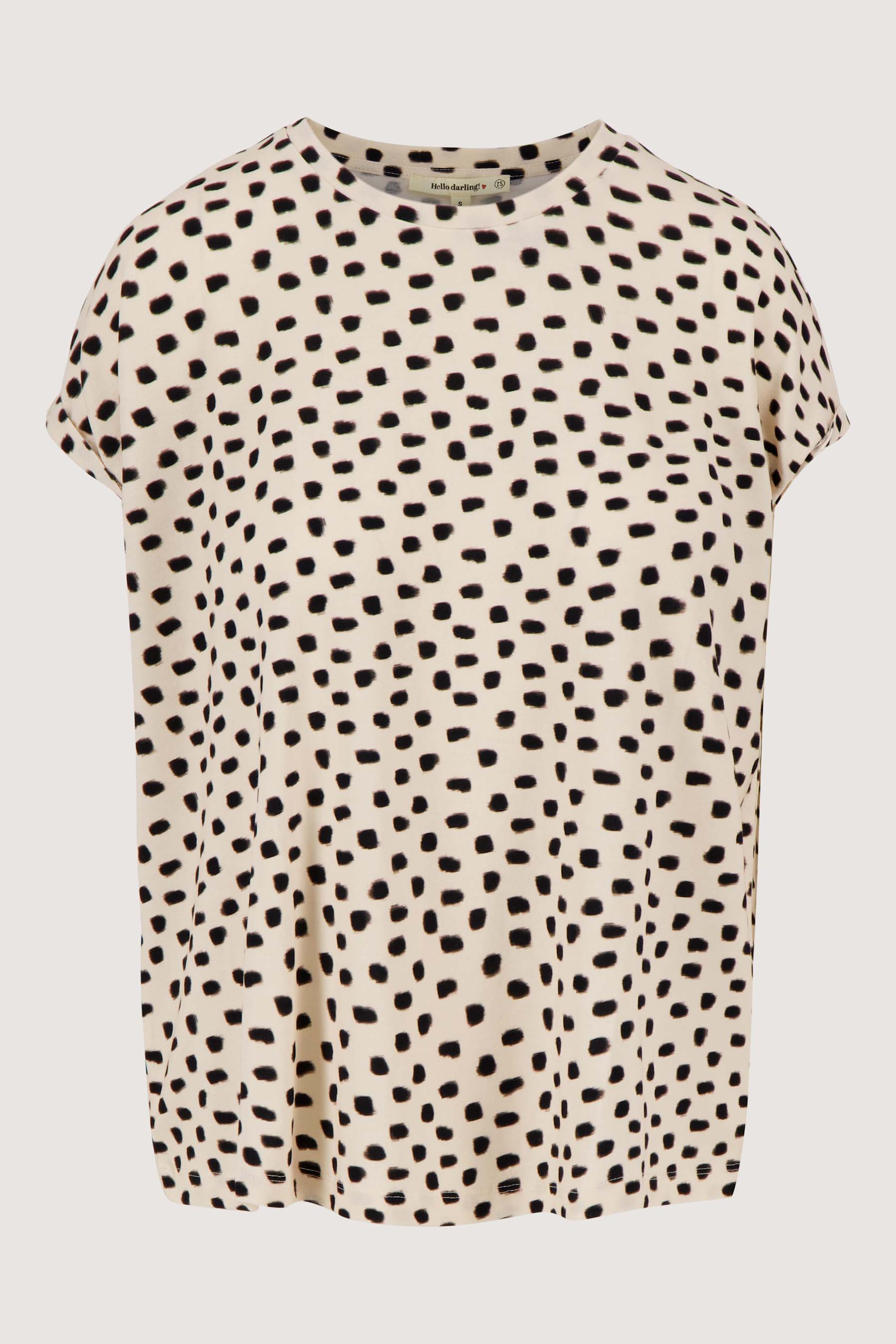T-shirt with rolled-up sleeves and polka dot print