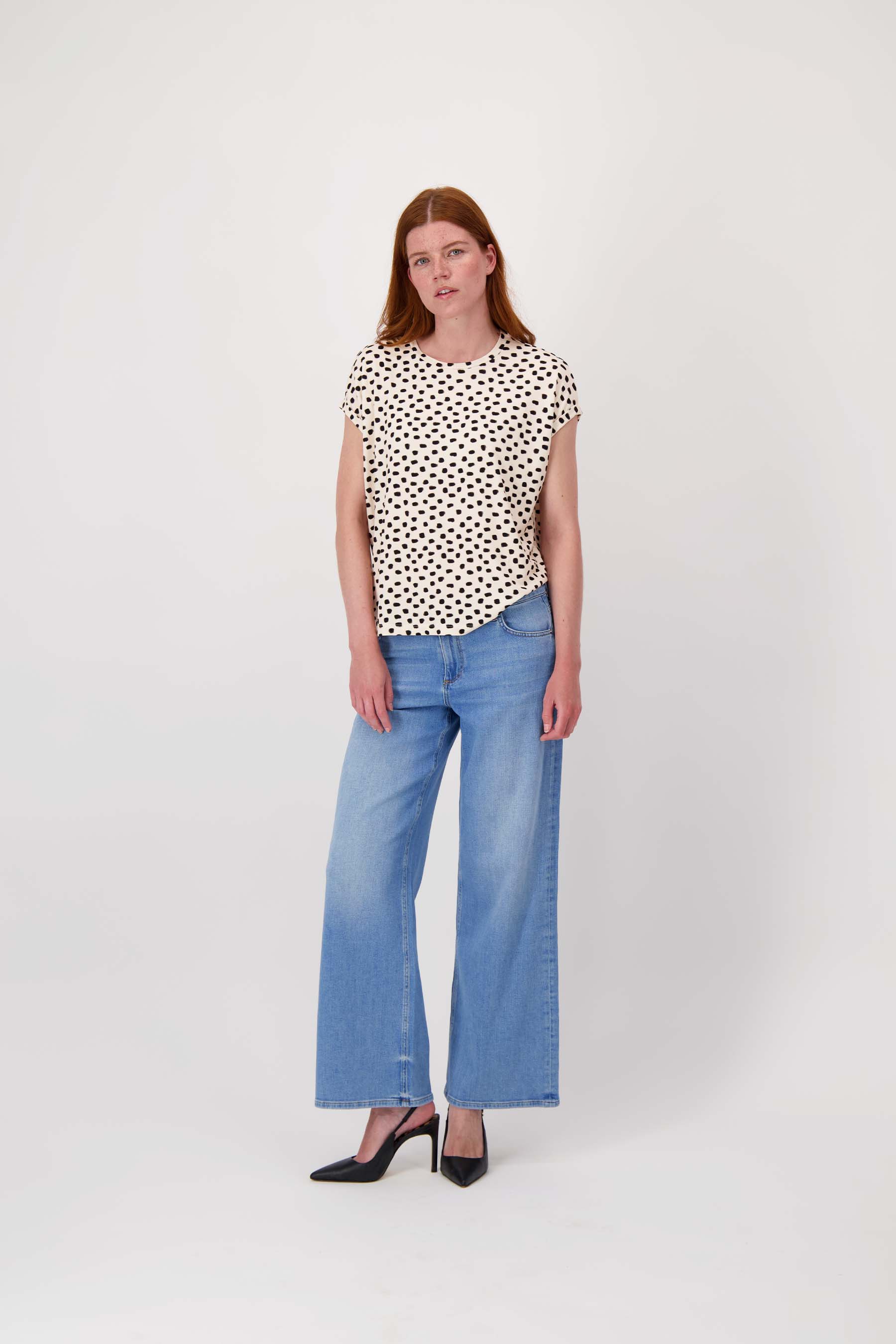 Suss comfortable T-shirt with polka dot print and rolled-up sleeves
