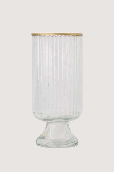 The Zusss table vase made of ribbed glass is the eye-catcher for your interior. This beautiful table vase combines transparent glass with a gold rim for an elegant look. Made of high-quality glass (itp-core.Quality), with an S size (itp-pim.Size), this table vase fits perfectly on any table or windowsill. The ribbed pattern gives the table decoration a playful effect that catches the light beautifully. Discover more in our home collectionand instantly add atmosphere to your home with this Zusss table vase made of ribbed glass.