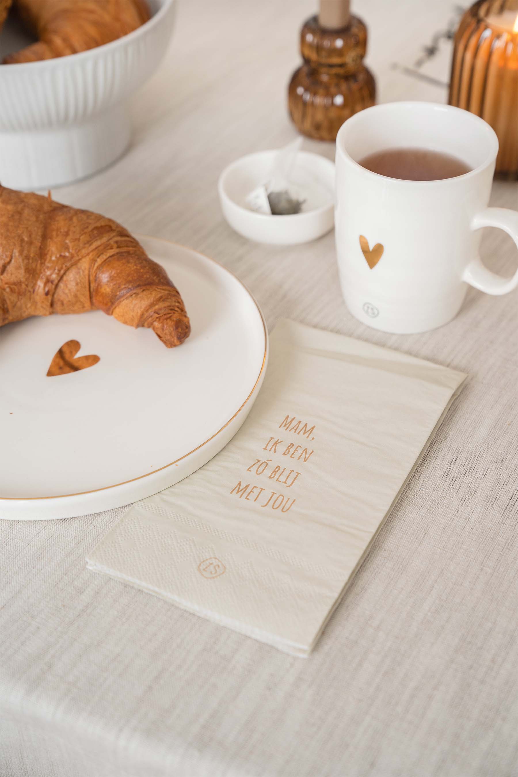 Theemok van Zusss met een gouden hartje erop. Kenmerkend van goud geglazuurd servies is dat dit niet in de vaatwasser kan, vandaar dat je deze... Lees meer