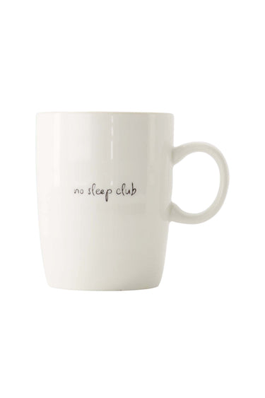 This Zusss tea mug for the no sleep club is perfect for those who enjoy a hot drink at any time of the day. The mug has a delicate, white color and a subtle text that exactly captures those restless nights. With a sturdy handle, it sits comfortably in your hand and makes your break just that little bit more special. The ceramic quality makes for a durable fine mug that you will reach for again and again. For those who belong to the no sleep club and still want to enjoy their tea, this mug is a fine choice.