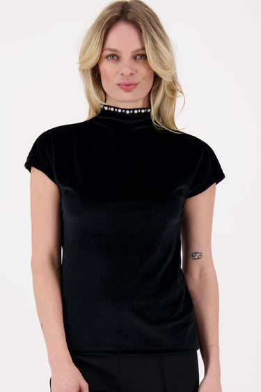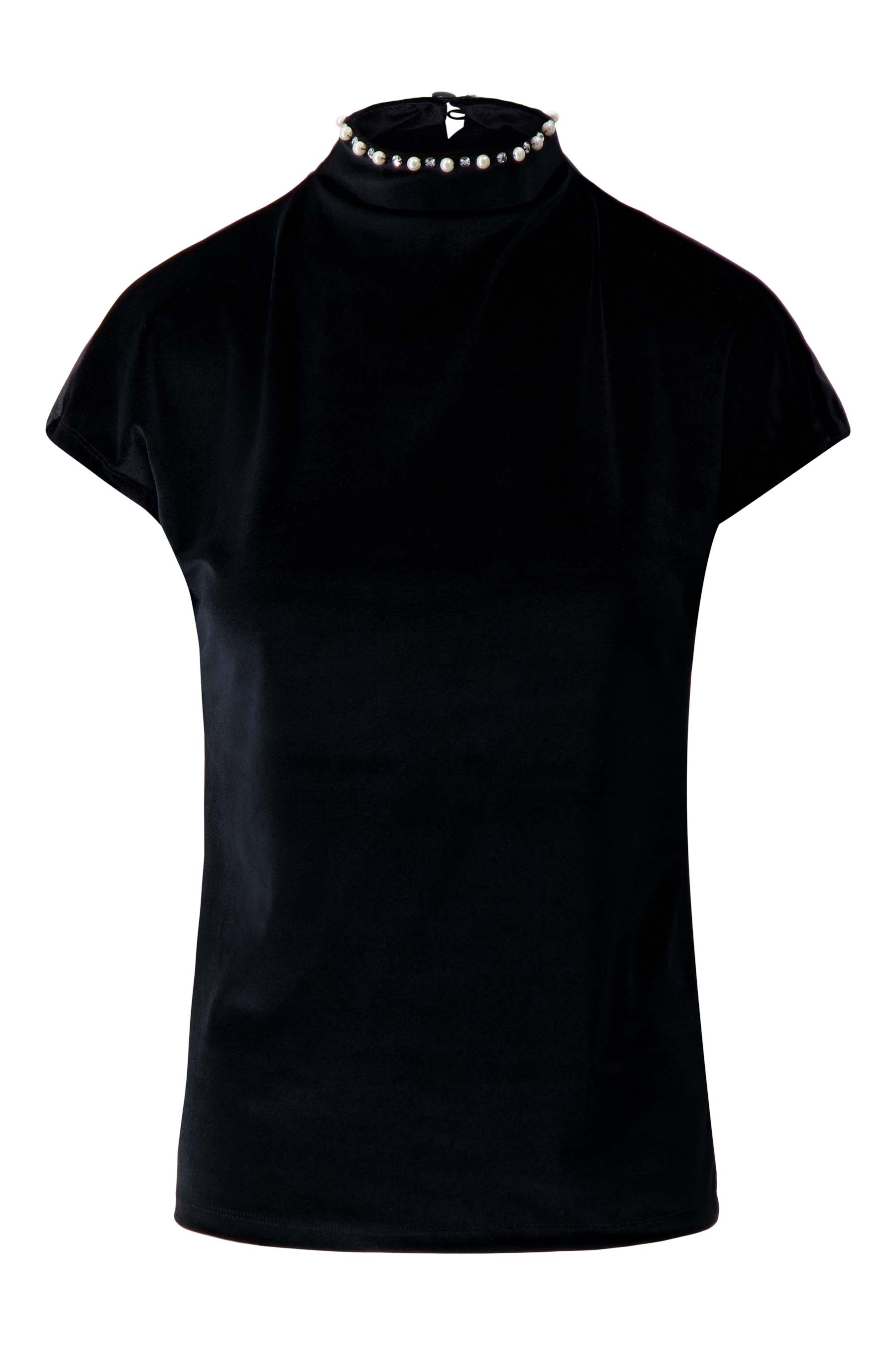This Zusss turtle top with pearls brings a sophisticated touch to your outfit. The black color of the top forms a calm base, while the pearl accents at the neckline are playful and stylish. Thank you to the short sleeves and soft material, you will wear this turtle top comfortably and versatile, perfect for a day out or an evening of socializing. The combination of simplicity and small detail makes this top a fine basic with a quirky twist.