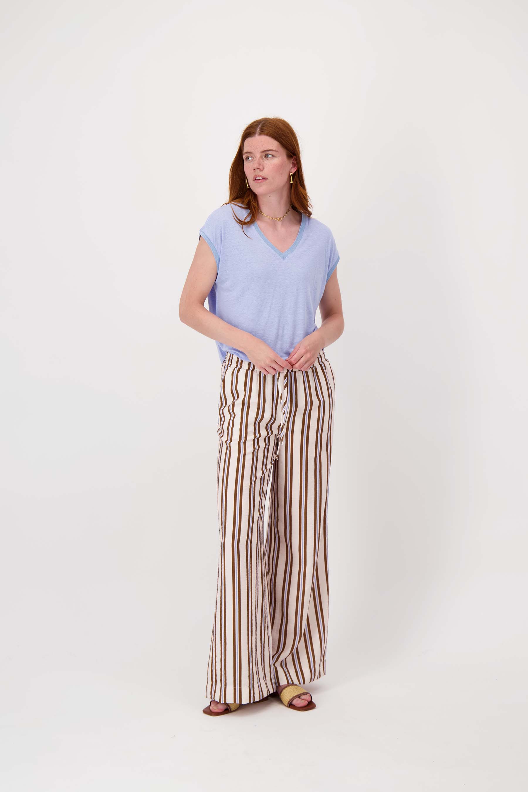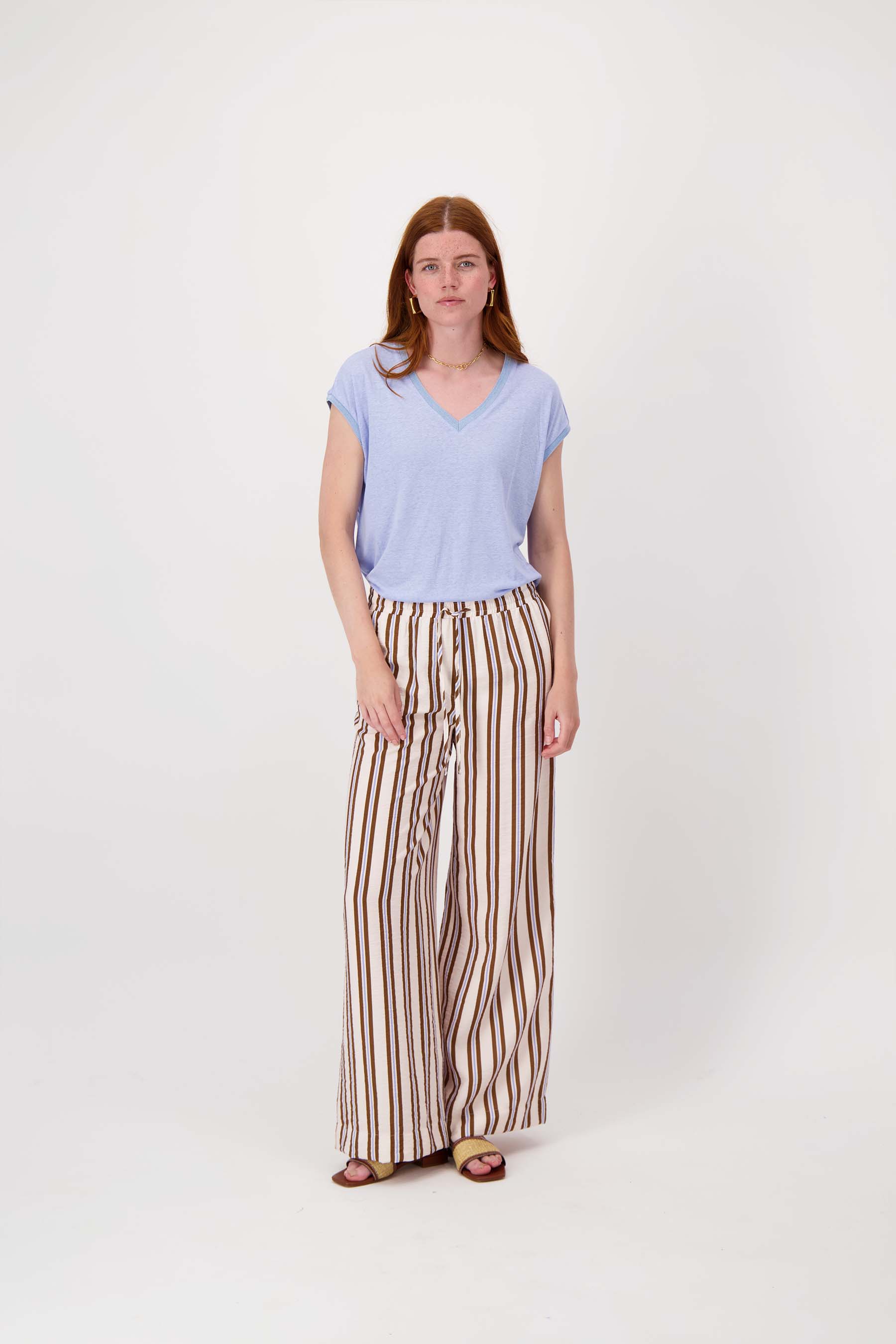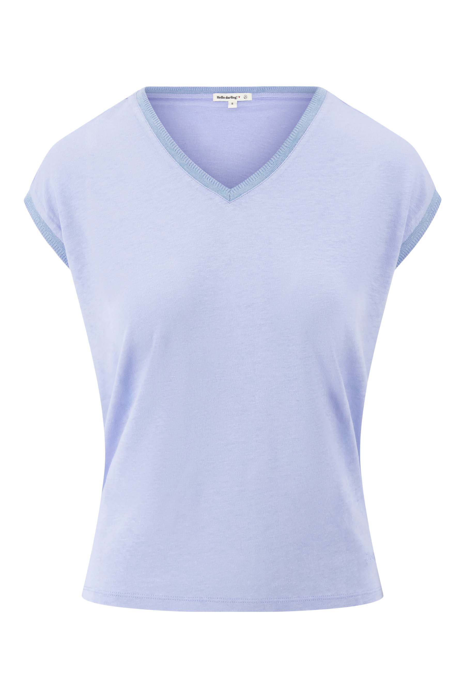 The Zusss V-neck top with lurex trim is a must-have in every wardrobe. This V-neck top with lurex trim has a subtle sheen at the neckline and comes in a soft cornflower blue color. The top drapes smoothly and pairs effortlessly with your favorite pants or skirts. Thanks to the lightweight material, you can wear this V-neck top with lurex trim all year round. Pair this top with one of our cardigans for a cute look.