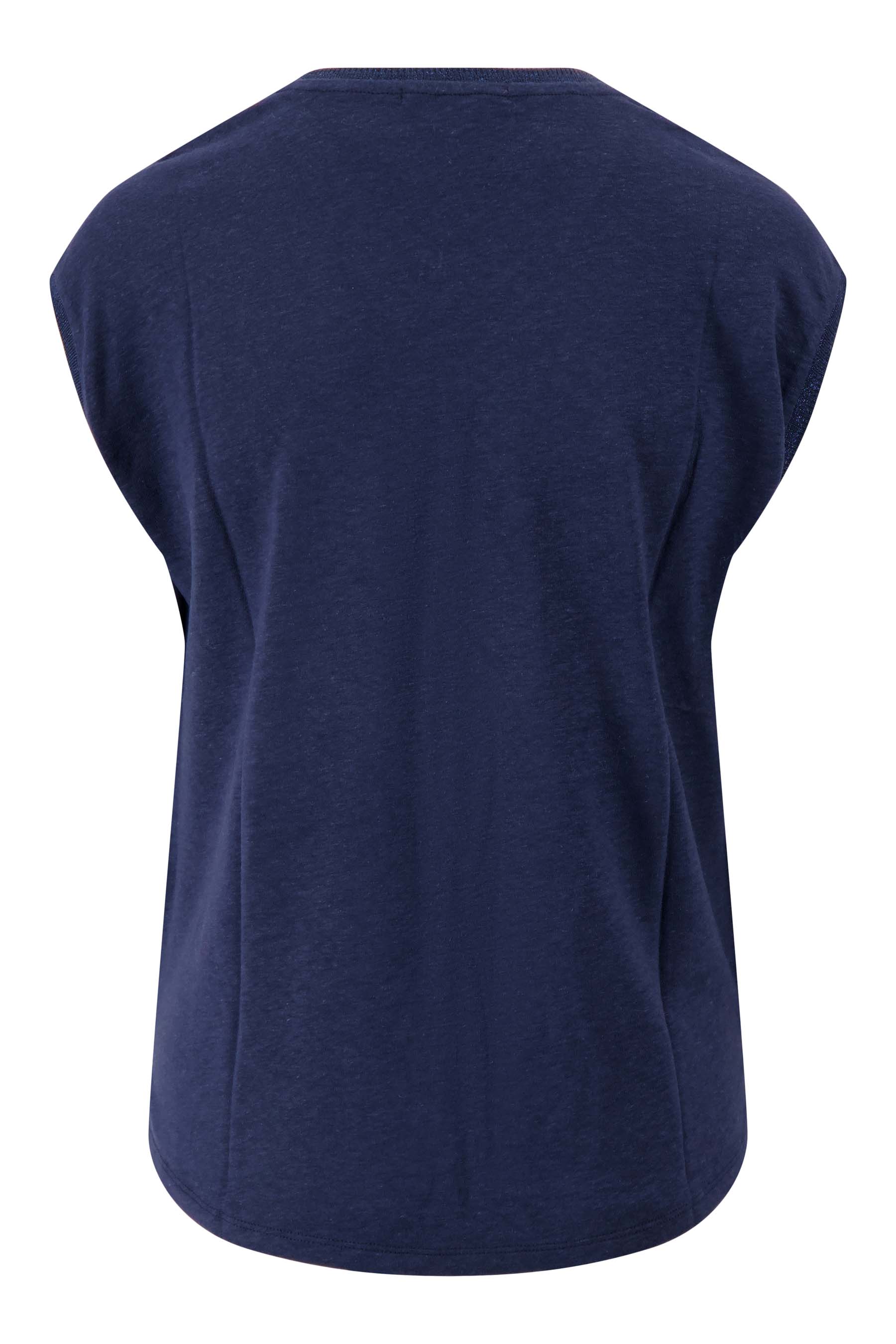 The Zusss V-neck top with lurex trim is a stylish must-have in your wardrobe. This V-neck top combines comfort with a subtle glitter detail in the lurex trim for a playful touch. Made in a deep summer navy color, this V-neck top is perfect for summer days and nights out. Thanks to the soft material, this V-neck top is wonderfully light and airy. Combine this V-neck top with one of our shoulder bags or necklaces to complete your look.