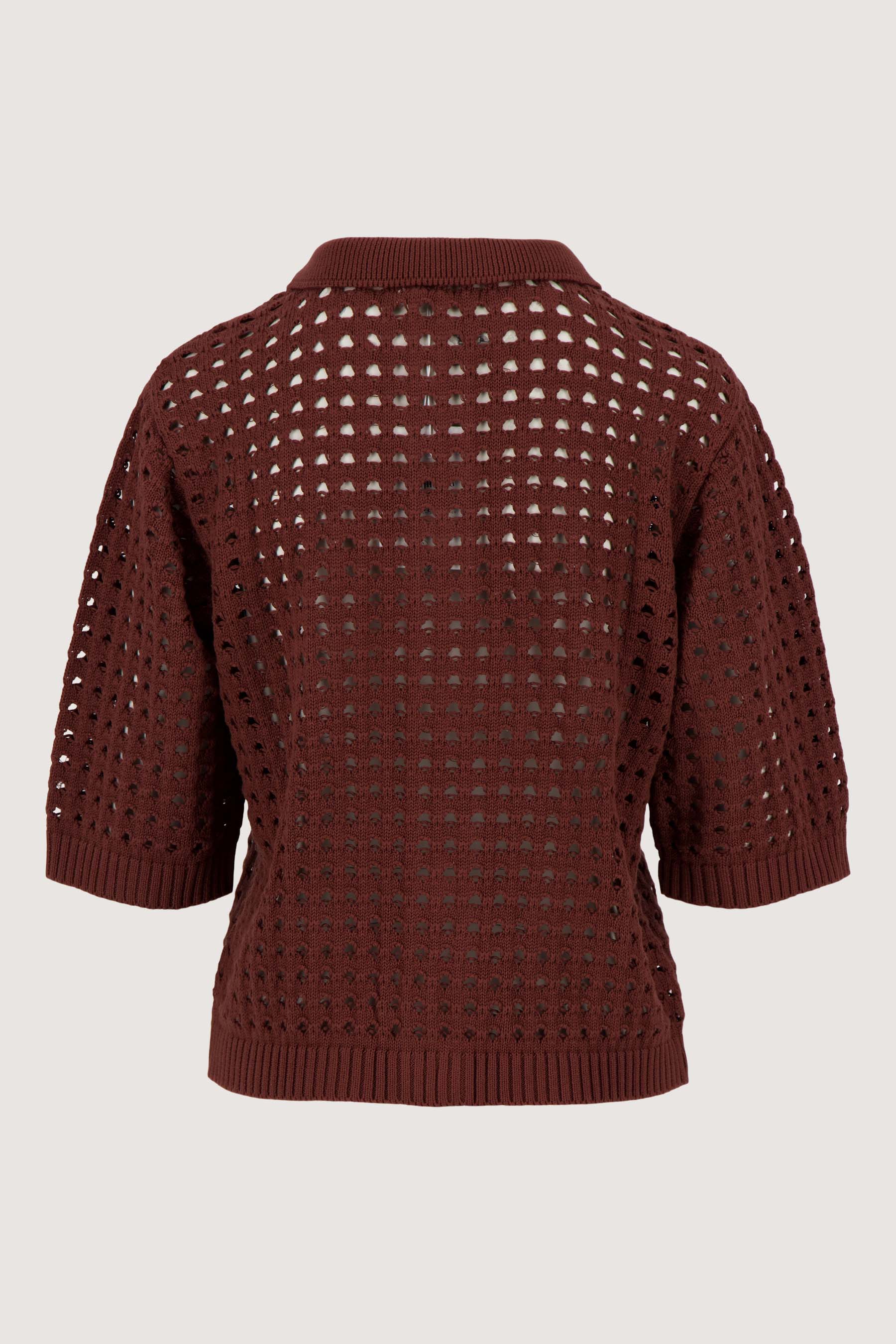cardigan with polo collar in openwork