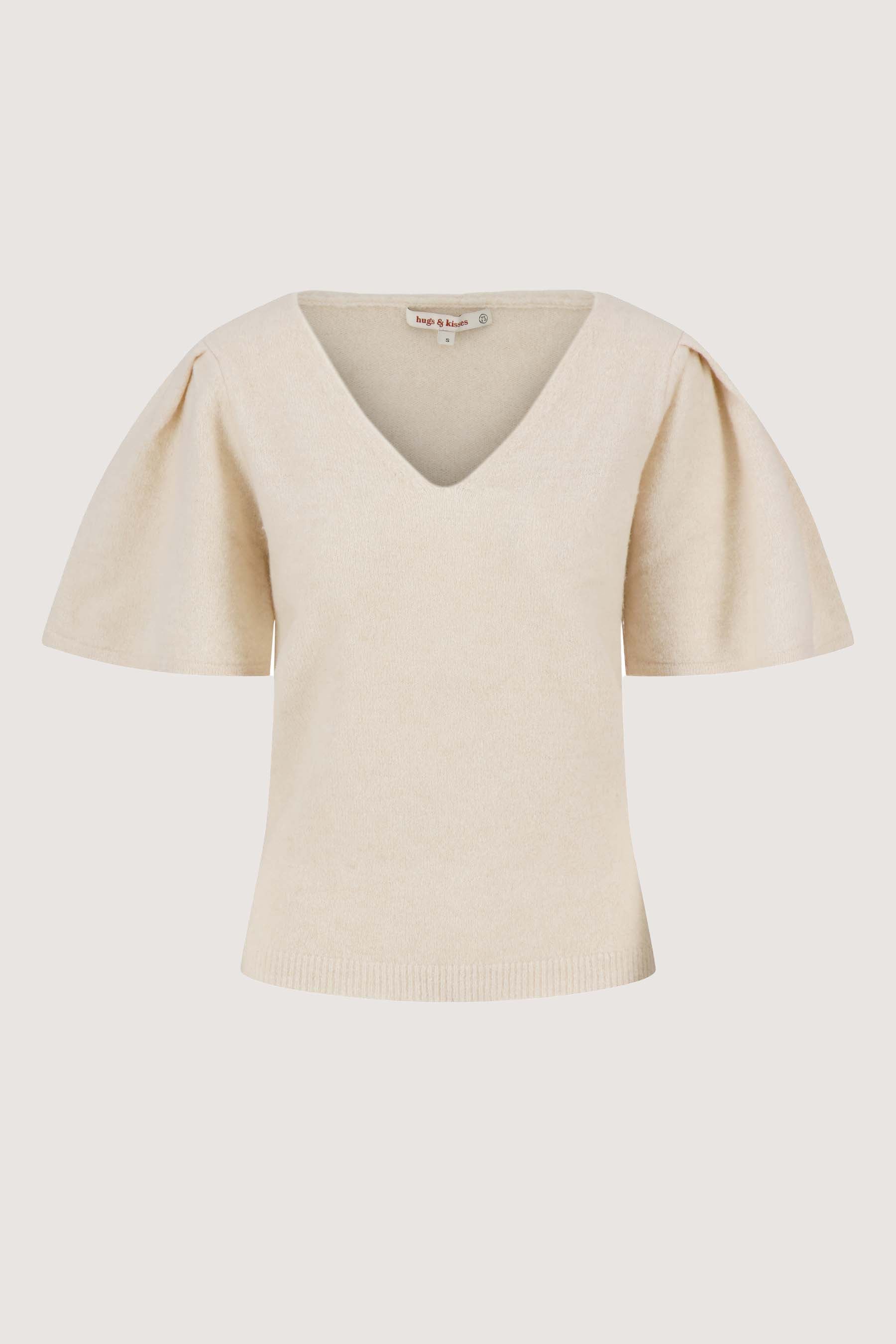 This Zusss women's top with butterfly sleeves is a stylish addition to your wardrobe. The fluffy fabric ensures a soft, comfortable wearing experience. The off-white color makes this top easy to combine with different outfits. The V-neck adds an elegant touch, while the voluminous butterfly sleeves give the top a unique look. The fine structure of the fluffy fabric makes this Zusss top feel wonderfully light and warm. Combine the top with one of our pants to complete the outfit.
