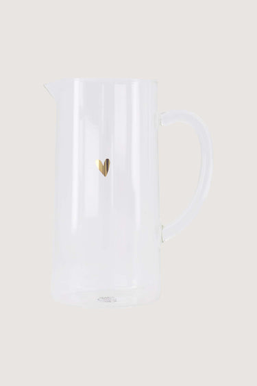 This water jug from Zusss is the perfect water jug for your table. The glass water jug combines sleek transparent glass with a subtle ochre heart, adding a warm touch to your interior. Made from clear glass for a durable and elegant look. With a capacity that is just right for everyday use, this water jug fits perfectly in any kitchen. Discover more beautiful items in our kitchen textile collectionand give your home that unique Zusss style. The jug's dimensions are practical and ensure comfortable pouring.