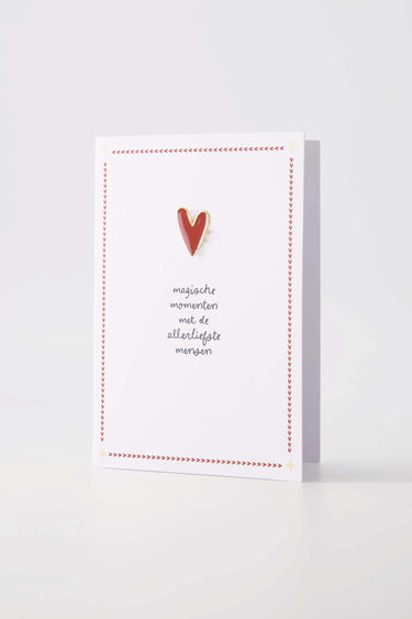 De Zusss wenskaart magische momenten is een bijzondere manier om jouw bericht extra liefdevol te maken. Deze wenskaart met broche valt op door de schattige rode hartvormige broche die je cadeau geeft aan je allerliefste mensen. Het wit van de kaart zorgt voor een frisse uitstraling, terwijl het sierlijke randje de kaart precies die Zusss-zachte touch geeft. De magische momenten die je deelt worden hiermee nog specialer, precies zoals je wilt. Ideaal om dierbaren te verrassen met iets unieks en liefs.
