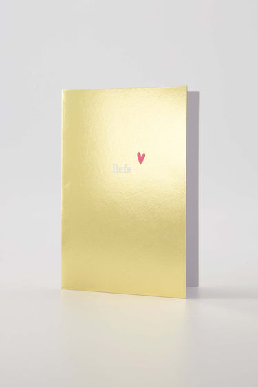 Deze Zusss wenskaart is perfect voor een liefdevolle boodschap. De wenskaart liefs goud valt op door zijn warme goudkleur met een subtiel rood hartje en... Lees meer