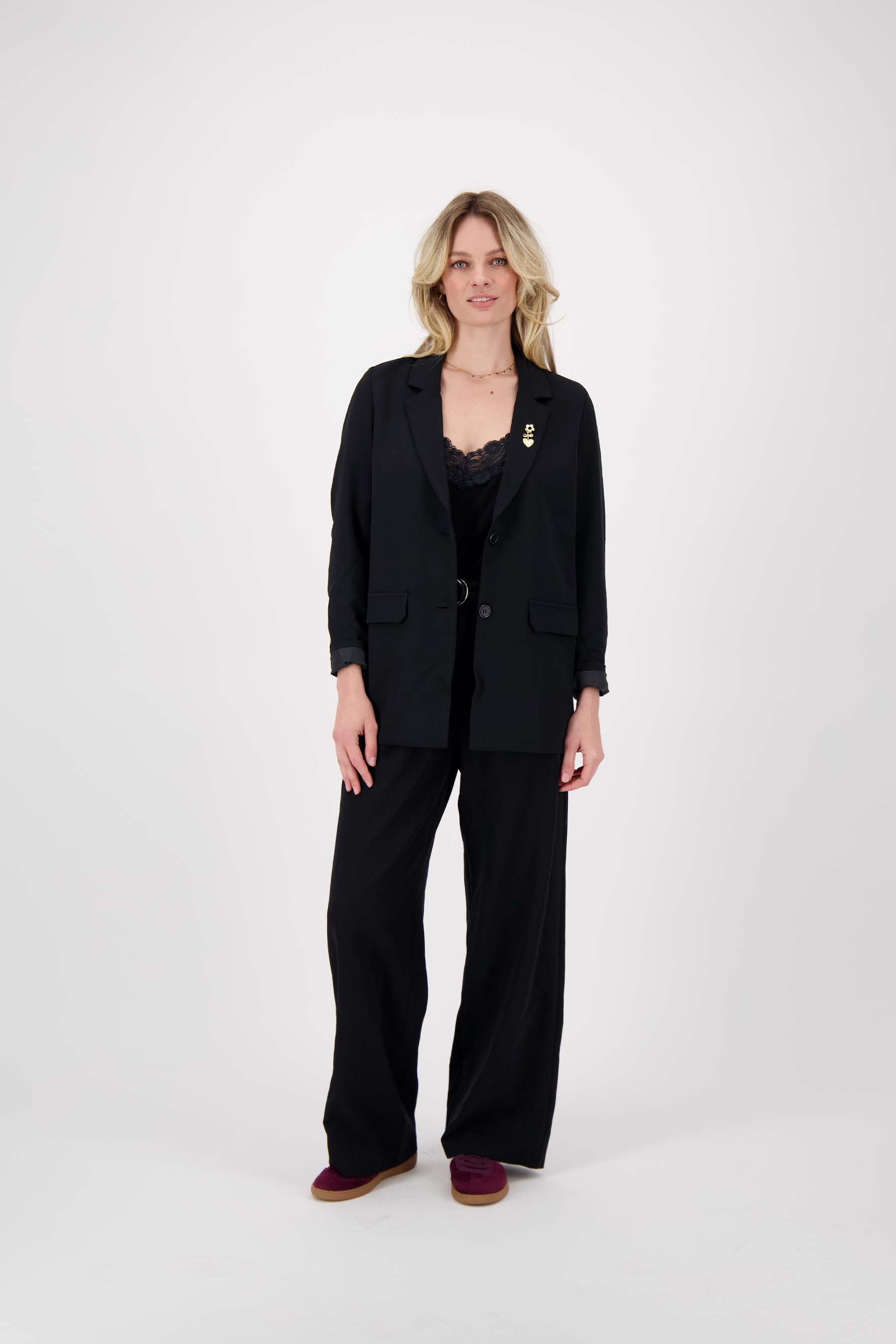 These wide pants with belt by Zusss are a real must-have for those who love comfort and style. The black color makes the wide pants with belt easy to combine with your favorite tops. The pants fall smoothly and have an elegant wide leg, perfect for a relaxed but chic look. The belt subtly accentuates your waist, which makes these wide pants with belt extra special. A versatile addition to your wardrobe, ideal for both work and leisure.