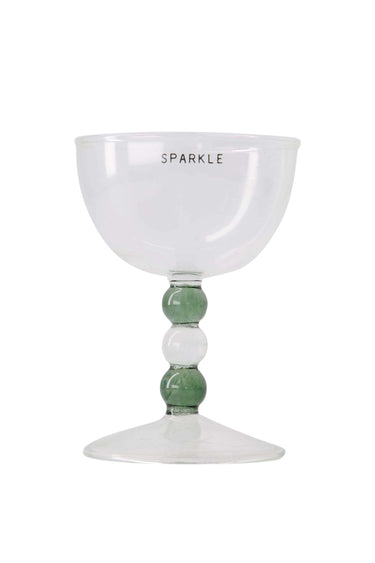Dit Zusss wijnglas sparkle is een fijn en bijzonder glaswerk voor mooie momenten. Het transparante glas met donkere groene bolletjes in de steel geeft dit... Lees meer