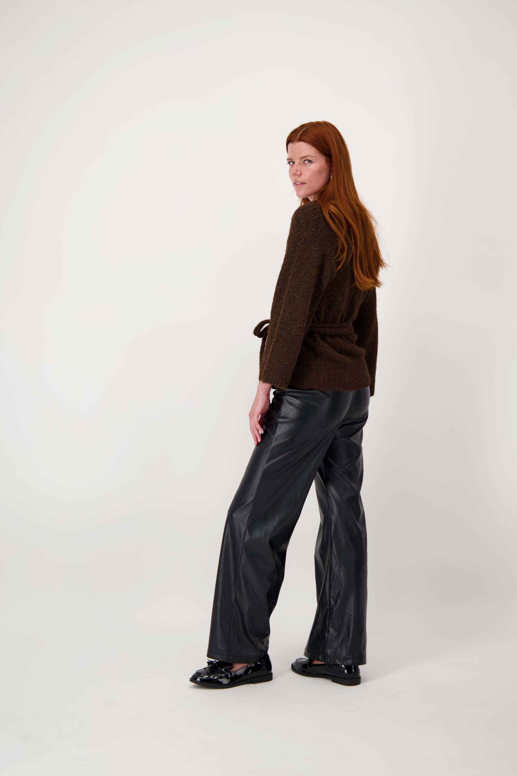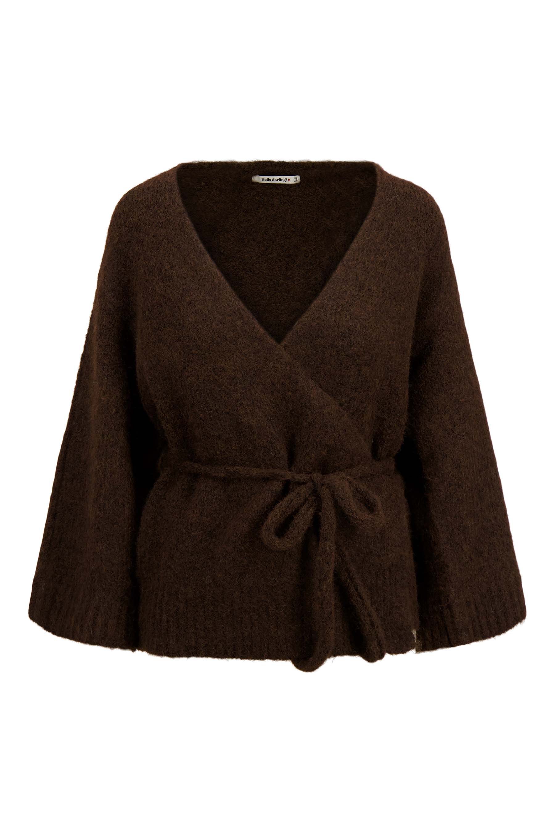 The Zusss wrap cardigan is a wonderfully soft and stylish addition to your closet. This wrap cardigan combines comfort and a casual look with a chocolate brown color that is easy to combine. Thank you to the wrap style, the cardigan fits nicely and gives a playful effect. The cardigan fits perfectly within the cardigan category and is ideal for both home and travel. This warm wrap cardigan is a real basic with a cool touch, completing your outfit without any fuss.